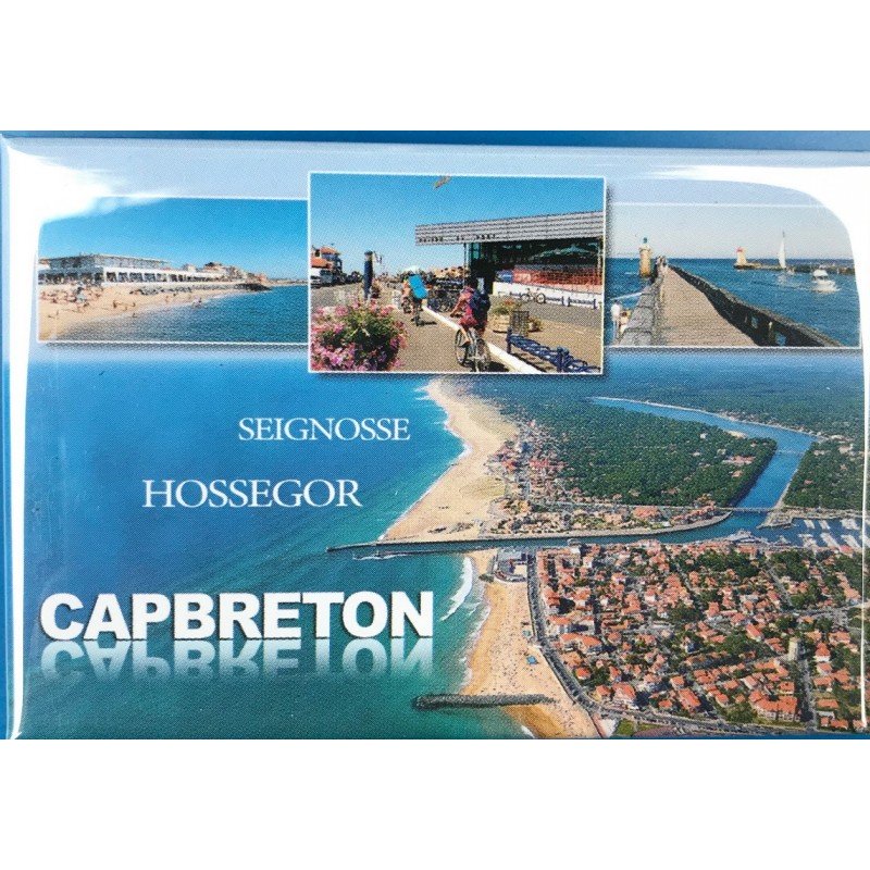 Magnet vue aérienne de Capbreton, Hossegor et Seignosse, vignettes front de mer, Phare et Estacade de Capbreton